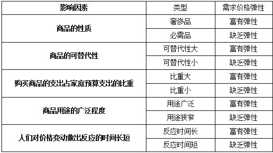 一種商品需求價格彈性大小受很多種因素的影響,主要有: