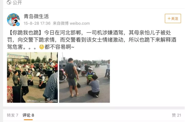 2.當(dāng)場(chǎng)下跪,行為人采取下跪等極端方式博取同情,引發(fā)圍觀。