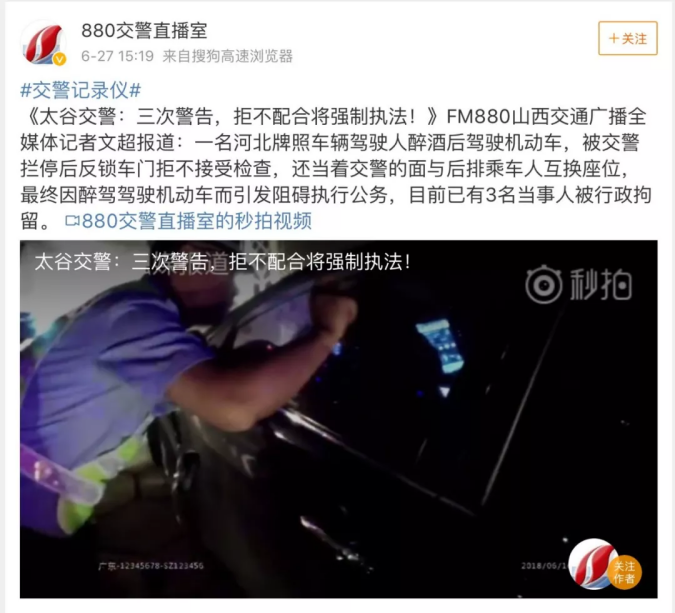 7.拒不配合,在盤查、檢查時(shí),行為人反鎖車門車窗拒不接受檢查的。