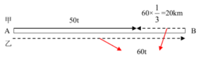 例3.甲、乙兩人同時(shí)駕車從A地向B地出發(fā),甲的車速是每小時(shí)50千米,乙的車速是每小時(shí)60千米,乙到達(dá)B地后立即原路返回,又過20分鐘與甲相遇。A地與B地之間的距離是( )千米。