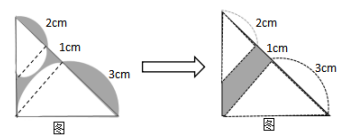 【例題3】如圖,等腰直角三角形,斜邊為6cm,在兩直角邊上取一定長度為直徑作兩個半圓,且兩半圓相切,分別與等腰三角形的斜邊截得長度為2cm、3cm的弦,求陰影部分的面積?