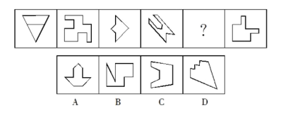 【解析】A。每個(gè)圖形都有且僅有一條對(duì)稱軸,對(duì)稱軸的方向依次順時(shí)針旋轉(zhuǎn)45度,應(yīng)選擇一個(gè)有豎直對(duì)稱軸的圖形,A項(xiàng)符合。