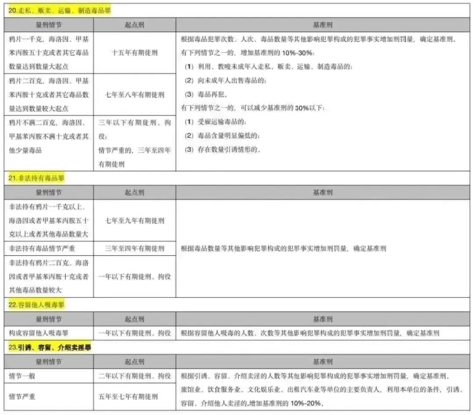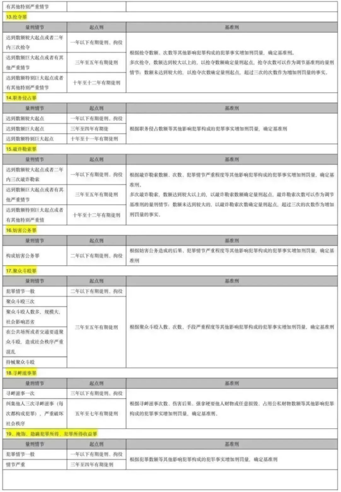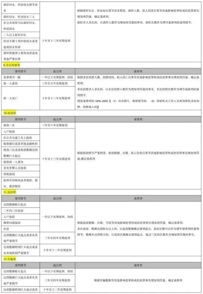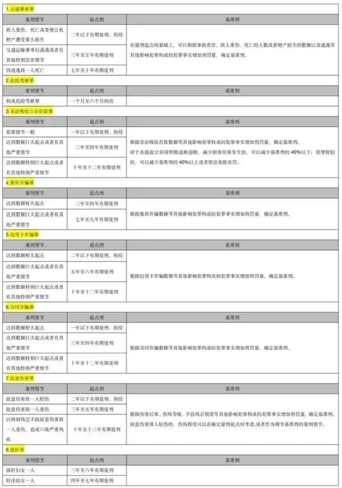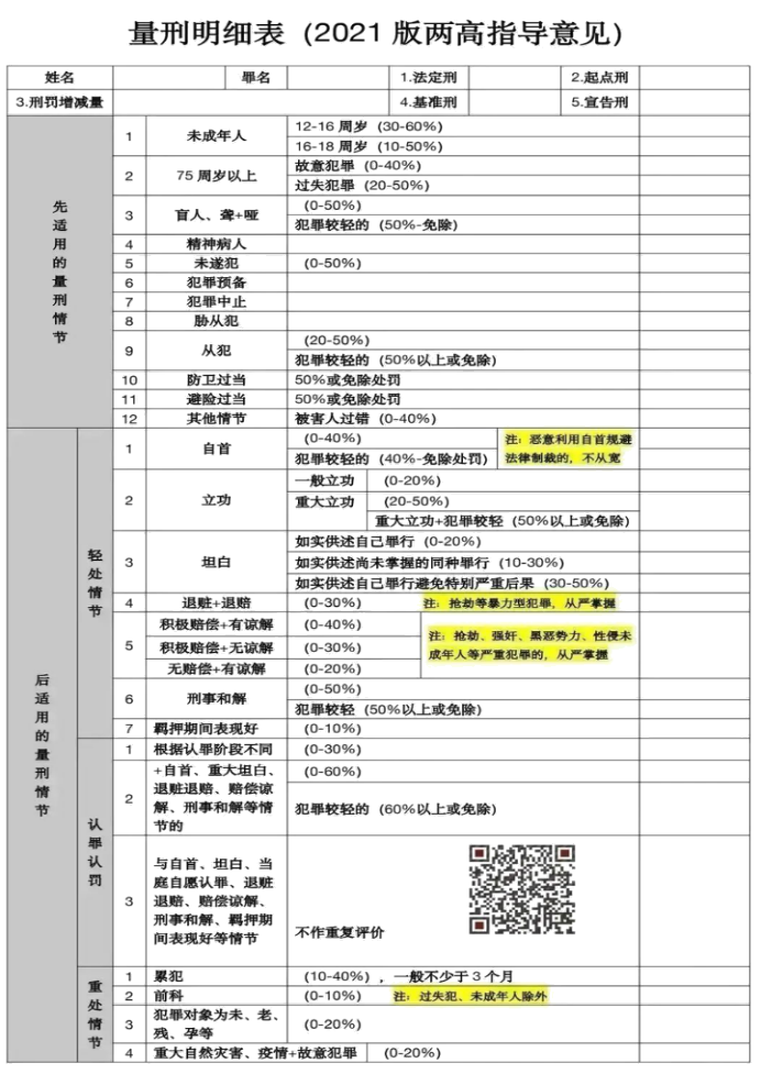 2021最新量刑明細表