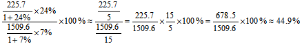 【解析】 45%。本題當中部分增長量既是第一產業(yè)增加值的增長量
