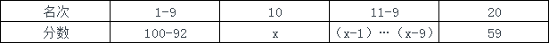 【點評】此題有兩個特點,第一涉及的名次較多,共有20人,如果20個名次全部構(gòu)造出來則過于浪費時間,故在解題過程中,分數(shù)相連的名次可以列為一格。第二計算量較大,涉及到等差數(shù)列的求和以及多位數(shù)的加減法。建議考生們在解題過程中一定要掌握相應(yīng)的計算技巧,在此我們利用等差數(shù)列的中位數(shù)進行求和便會大大提高我們的計算速度。