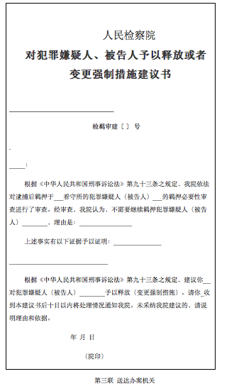 新《人民檢察院刑事訴訟規(guī)則》第五百七十五條規(guī)定:“負責捕訴的部門依法對偵查和審判階段的羈押必要性進行審查。經審查認為不需要繼續(xù)羈押的,應當建議公安機關或者人民法院釋放犯罪嫌疑人、被告人或者變更強制措施。審查起訴階段,負責捕訴的部門經審查認為不需要繼續(xù)羈押的,應當直接釋放犯罪嫌疑人或者變更強制措施。負責刑事執(zhí)行檢察的部門收到有關材料或者發(fā)現(xiàn)不需要繼續(xù)羈押的,應當及時將有關材料和意見移送負責捕訴的部門?!?/span>