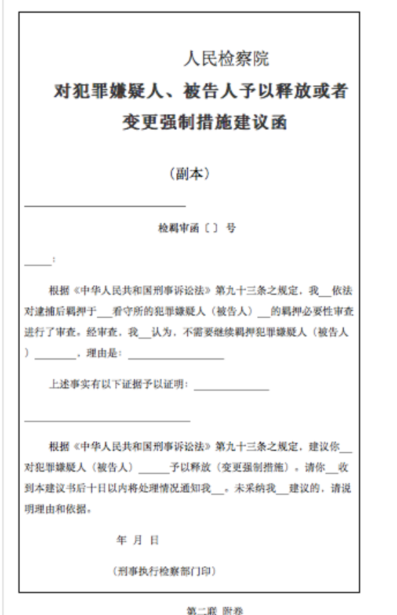 2012年刑訴法第95條規(guī)定了,檢察院對于羈押必要性進行審查程序。建立羈押必要性審查制度是保障犯罪嫌疑人、被告人人權的需要。檢察機關天然具有監(jiān)督法律職能,因此法律賦予其偵查監(jiān)督權、羈押措施監(jiān)督權、抗訴權等巨大權力。(2)最高人民檢察院《人民檢察院刑事訴訟規(guī)則》