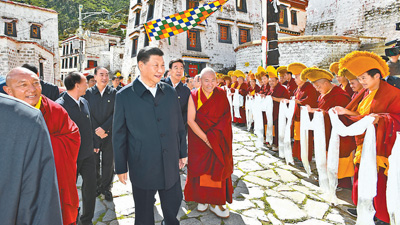 7月21日至23日,習(xí)近平在西藏自治區(qū)黨委書記吳英杰、自治區(qū)政府主席齊扎拉陪同下,先后來到林芝、拉薩等地,深入農(nóng)村、城市公園、鐵路樞紐、宗教場所、文化街區(qū)等看望慰問各族干部群眾。