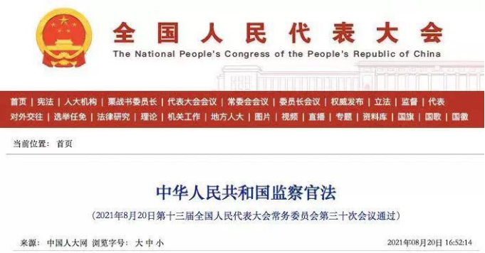 中華人民共和國(guó)監(jiān)察官法(全文)