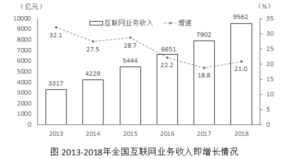 2018年全國互聯(lián)網業(yè)務收入9562億元,比上年增長21.0%。其中,廣東、上海、北京互聯(lián)網業(yè)務收入分別增長26.5%、20.0%和25.2%。2018年互聯(lián)網企業(yè)信息服務收入8594億元,比上年增長20.7%。其中,電子商務平臺收入3667億元,增長13.1%;網絡游戲業(yè)務收入1948億元,增長17.8%。2018年互聯(lián)網行業(yè)研發(fā)投入490億元,比上年增長19.0%。