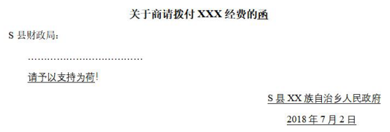 A、函 B、請(qǐng)予以支持為荷 C、2018年7月2日 D、S縣XX族自治鄉(xiāng)人民政府