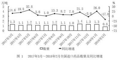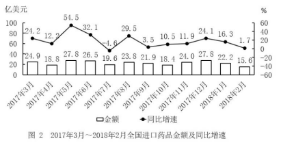 D.2017年1月,全國進(jìn)口藥品金額超過20億美元
