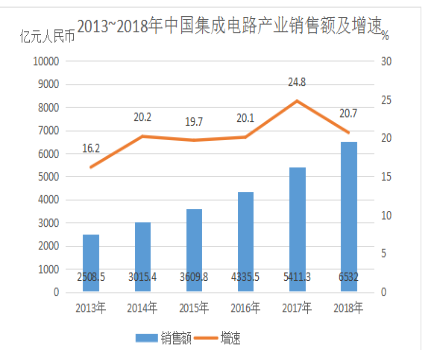 128.2013~2018年間中國集成電路產(chǎn)業(yè)銷售額增速最高的年份,當年集成電路進口金額同比約增加:( )