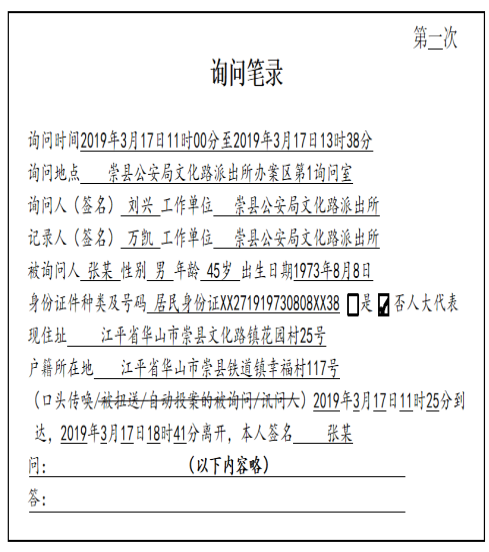 86.民警到達(dá)現(xiàn)場(chǎng),初步了解情況后,將張某口頭傳喚至公安機(jī)關(guān)進(jìn)行詢問(wèn),制作了《詢問(wèn)筆錄》(如下所示)。根據(jù)有關(guān)法律規(guī)定,筆錄內(nèi)容不符合規(guī)范要求的是:( )(單選)
