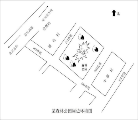 某森林公園是甲市一處4A級(jí)風(fēng)景區(qū),地處平原,交通便利,每年接待大量游客。某年4月17日13:50左右,公安派出所值班民警接到群眾打電話報(bào)警稱:公園中央地帶一處園區(qū)突然起火,現(xiàn)場(chǎng)濃煙滾滾,有多處明火燃燒,并有許多不明隱患。