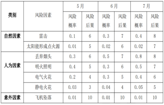 發(fā)生森林火災(zāi)風(fēng)險(xiǎn)矩陣表