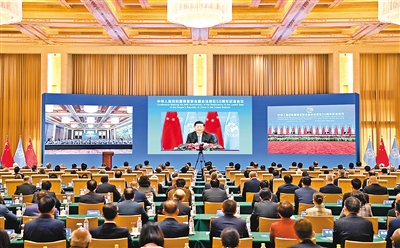 金秋時節(jié)的北京,秋高氣爽,云淡風(fēng)輕。主會場人民大會堂金色大廳內(nèi),燈光璀璨,鮮花綻放。中華人民共和國國旗和聯(lián)合國旗交相輝映,聯(lián)合國各會員國國旗組成的旗陣氣勢恢宏。