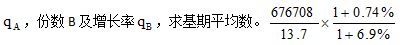已知總量A、份數(shù)B,求現(xiàn)期平均數(shù)。