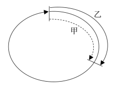 對于環(huán)形上的追及問題,一般題目的題設(shè)條件為:甲乙兩人在環(huán)形跑道的同一地點同時出發(fā)同向而行,一段時間后在跑道上的某一點兩人相遇……在此過程中甲比乙要多走一圈,時間相等,則環(huán)形跑道的周長=速度差×?xí)r間。