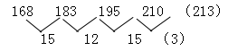168,183,195,210,( )