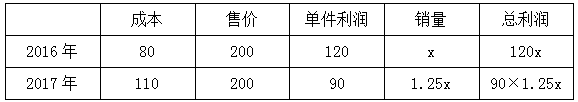 【答案】B。【解析】根據(jù)題干信息,設(shè)2016年的銷量為x件,可列表格
