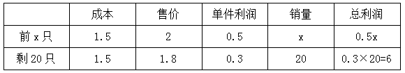 【答案】B。【解析】根據(jù)題干信息,設(shè)以原價賣了x只,可列表格