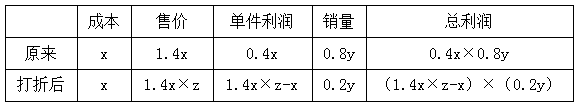 【答案】C。【解析】根據(jù)題干信息,設(shè)這批圖書成本為x,總量為y,打折率為z,可列表格