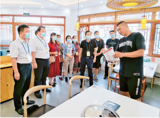 2020年9月9日,全國人大常委會(huì)法工委基層立法聯(lián)系點(diǎn)——正定縣正定鎮(zhèn)“人大代表之家”組織人大代表和信息員深入餐飲業(yè)征集反食品浪費(fèi)法立法意見建議?!∪珖舜蟪N瘯?huì)供圖 馬瀟柘/攝