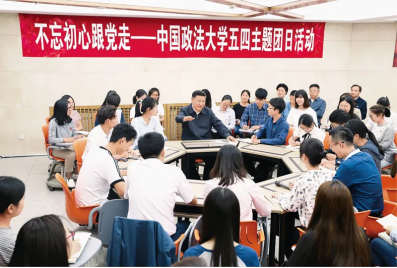 2017年5月3日,中共中央總書記、國家主席、中央軍委主席習(xí)近平來到中國政法大學(xué)考察。這是習(xí)近平在學(xué)生活動中心參加民商經(jīng)濟法學(xué)院本科二年級2班團支部開展的“不忘初心跟黨走”主題團日活動?!⌒氯A社記者 王曄/攝