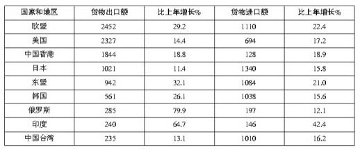 2007年我國(guó)對(duì)主要國(guó)家和地區(qū)貨物進(jìn)出口額及其增長(zhǎng)速度