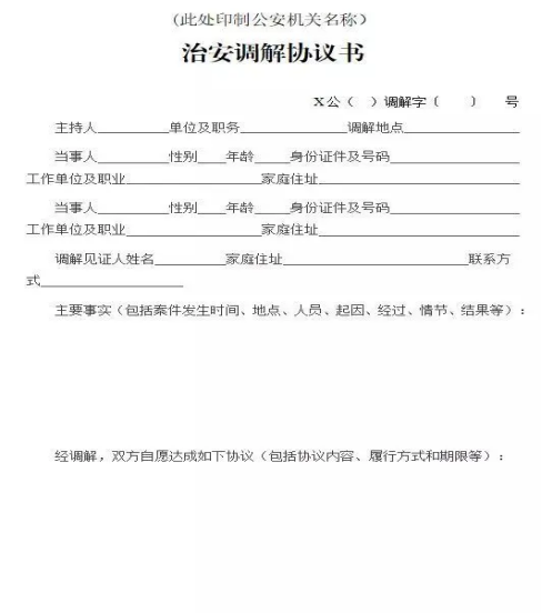 《公安機關(guān)治安調(diào)解工作規(guī)范》及調(diào)解協(xié)議書模板