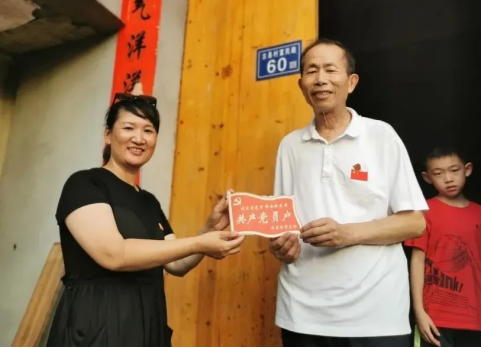 古縣村開展“共產(chǎn)黨員戶”掛牌亮身份活動,圖為孫麗美(左)為“共產(chǎn)黨員戶”發(fā)放門牌