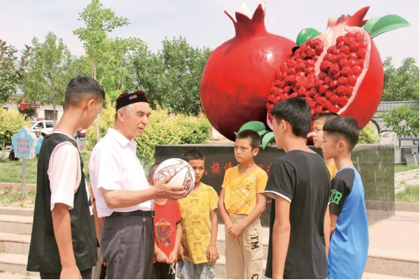 圖為2021年7月8日買買提江·吾買爾與布力開村青少年交流,勉勵他們好好學(xué)習(xí)、立志成才、報效祖國