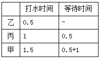 【答案】B【解析】每人花費的時間包括兩部分:打水時間和等待時間。第一個人打水時,其他兩人等待,第二個人打水時,剩下一人等待,最后一個人打水時,沒人等待。每人打水時間是固定的,因此想要時間總和最少,就要讓等待時間盡可能短,等待的人越多時,打水時間越短越好,這樣總的等待時間越短,所以應(yīng)該讓用時短的先打,長的后打。最合理的順序為:乙、丙、甲。那么每人花費的時間如下表所示,故花費的時間總和最少是0.5×3+1×2+1.5×1=5。