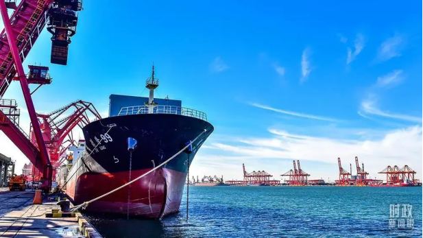 山東日照港。2021年10月,全球領(lǐng)先的順岸開放式全自動(dòng)化集裝箱碼頭在這里建成啟用。