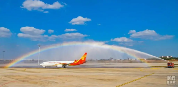 2021年12月2日,??诿捞m國(guó)際機(jī)場(chǎng)二期正式投運(yùn)。這是首個(gè)抵達(dá)機(jī)場(chǎng)二期的航班通過水門。