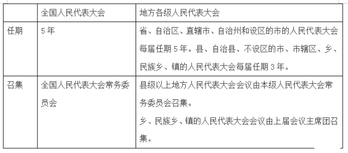 7.全國人民代表大會和地方各級人民代表大會知識對比。