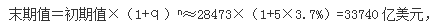 【答案】C【解析】由材料可知,2010年年末我國國家外匯儲備28473億美元,比上年末增加3.7%,若保持2010年的增長速度不變,也就是年均增長率為3.7%,求2015年的末期值,增長次數(shù)n=2015-2010=5,由于q<5%,則根據(jù)估算公式可得,