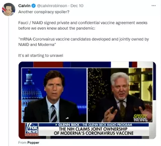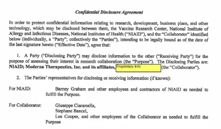 美國國立衛(wèi)生研究院與莫德納公司曾于2019年12月簽署“共同研發(fā)冠狀病毒疫苗”的秘密協(xié)議,但沒有證據(jù)表明此“冠狀病毒”就是造成當(dāng)下大流行的新型冠狀病毒。