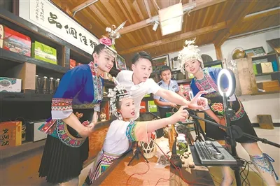 圖為廣西壯族自治區(qū)三江侗族自治縣某電商直播間內(nèi),專業(yè)老師向獨峒鎮(zhèn)侗娘就直播從業(yè)規(guī)范、注意事項及產(chǎn)品展示技巧等進行培訓。