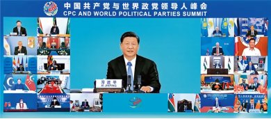 2021年7月6日,中共中央總書記、國家主席習近平在北京出席中國共產黨與世界政黨領導人峰會并發(fā)表主旨講話。新華社記者李響/攝