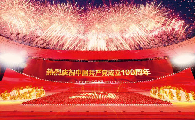 2021年6月28日晚,慶祝中國(guó)共產(chǎn)黨成立100周年文藝演出《偉大征程》在國(guó)家體育場(chǎng)盛大舉行。這是盛典儀式。新華社記者龐興雷/攝