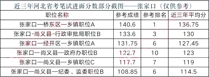 由于2018年機(jī)構(gòu)改革,河北省公務(wù)員招錄情況特殊,只招錄鄉(xiāng)鎮(zhèn)崗位。張家口地區(qū)招錄鄉(xiāng)鎮(zhèn)公務(wù)員 134 人,報名繳費(fèi) 8922 人。公考大神云集鄉(xiāng)鎮(zhèn)崗,故 2018 鄉(xiāng)鎮(zhèn)崗位分?jǐn)?shù)偏高,張家口鄉(xiāng)鎮(zhèn)公務(wù)員平均進(jìn)面分?jǐn)?shù) 126+。