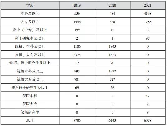 六、近三年各學(xué)歷招錄情況