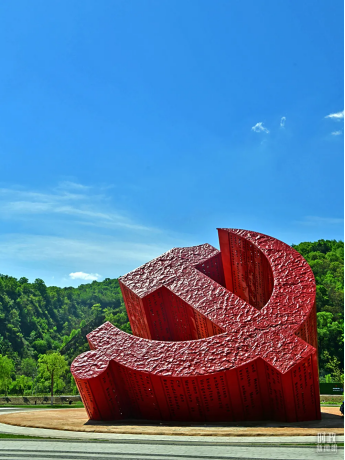 △陜西延安,南泥灣鎮(zhèn)桃寶峪村黨徽廣場(chǎng)。(圖/視覺中國(guó))