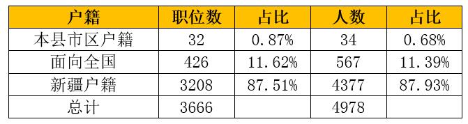 新疆公務員考試部分職位對戶籍有一定限制,具體需要見職位表“戶籍”一列: