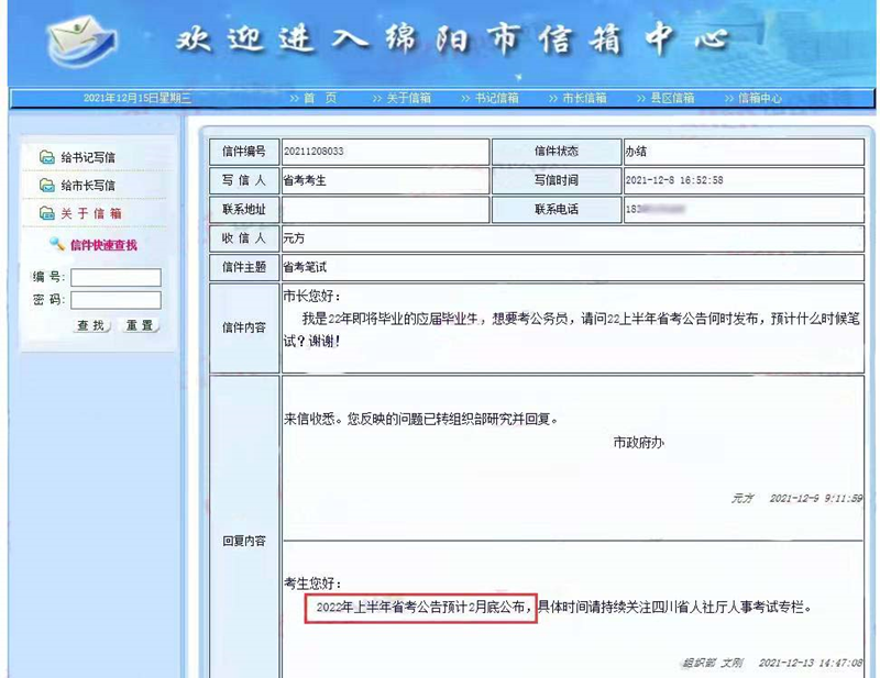 另外,有考生在綿陽市長信箱咨詢2022上半年四川省考時間,官方回復(fù):2022上半年四川省考公告預(yù)計2月底公布。↓↓↓
