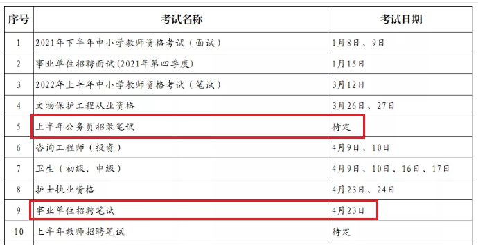 從成都人事考試計劃表格中我們確定,2022年四川公務(wù)員考試上下半年各舉行一次,具體時間待定。