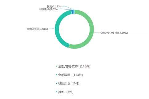 一審結(jié)果中,全部/部分支持的有146件,占比為54.89%;全部駁回的有113件,占比為42.48%;駁回起訴的有4件,占比為1.50%,超過一半案件的訴求得到法院的支持或部分支持,凸顯違反適當性的問題頗為可觀,也顯示出法院近年來對投資者保護力度較大。