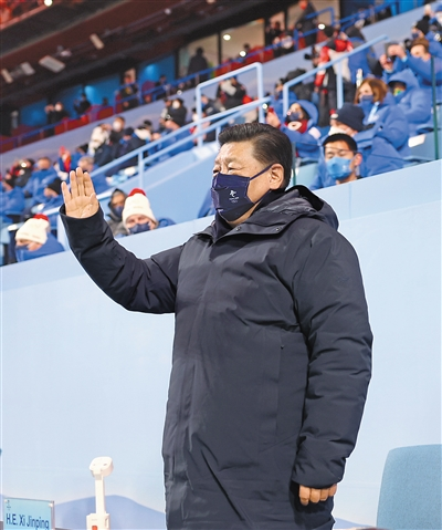2月4日晚,北京第二十四屆冬季奧林匹克運(yùn)動(dòng)會(huì)開幕式在國(guó)家體育場(chǎng)隆重舉行。這是國(guó)家主席習(xí)近平在主席臺(tái)上向大家揮手致意。新華社記者鞠鵬攝